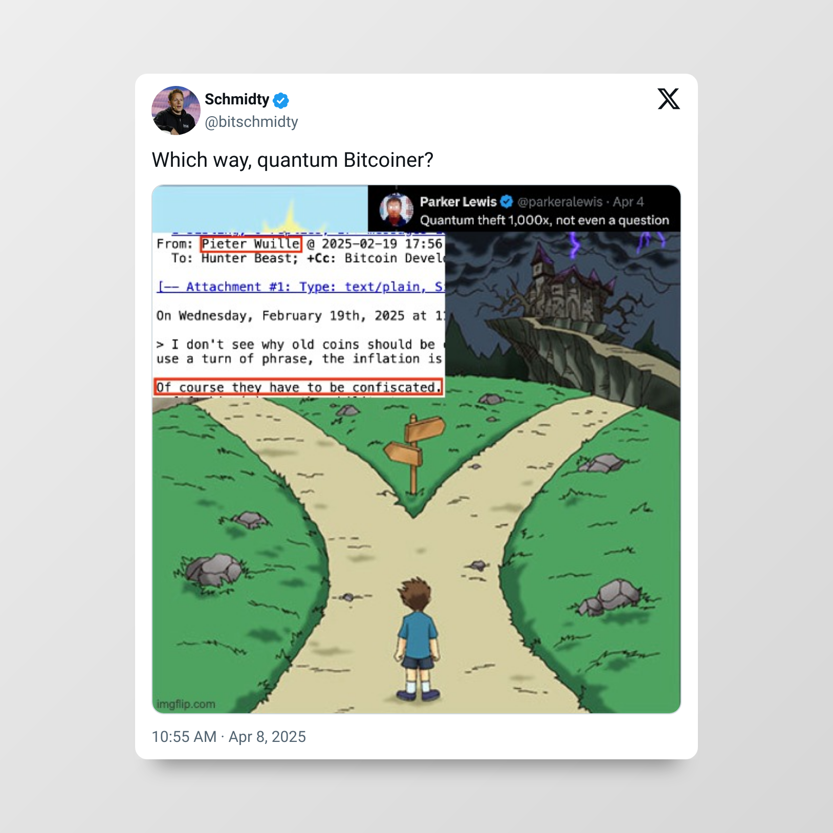 In Bitcoin circles, the debate around quantum-resistance is heating up. The original agitator was Jameson Lopp and his “Against Allowing Quantum Recovery of Bitcoin” article. In it, Lopp analyzes the quantum threat and tries to argue for and against quantum recovery. What should the Bitcoin network do about the so-called lost coins?